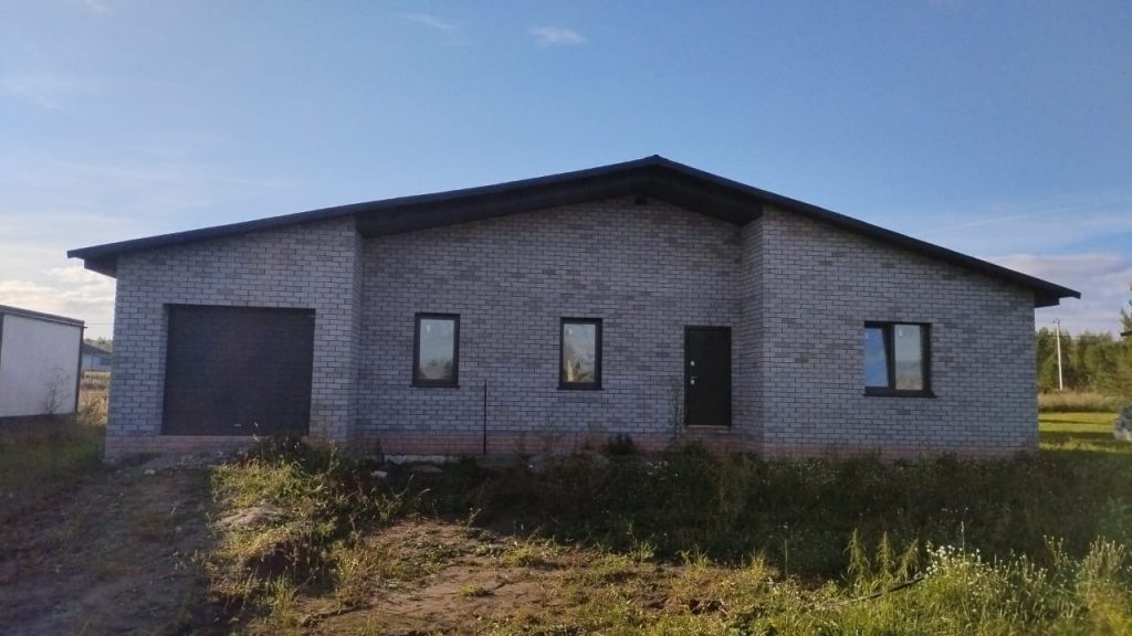 Одноэтажный дом общей площадью застройки 169.50 м2. В площадь входит гараж, теплый тамбур, жилые помещения (2 санузла, прихожая, 3 спальни, просторная кухня-гостиная с выходом на террасу.) Гараж с выходом в котельную. В доме подключен свет, вода, газ. На участке смонтирован септик из ж/б колец — 8,5 куб.