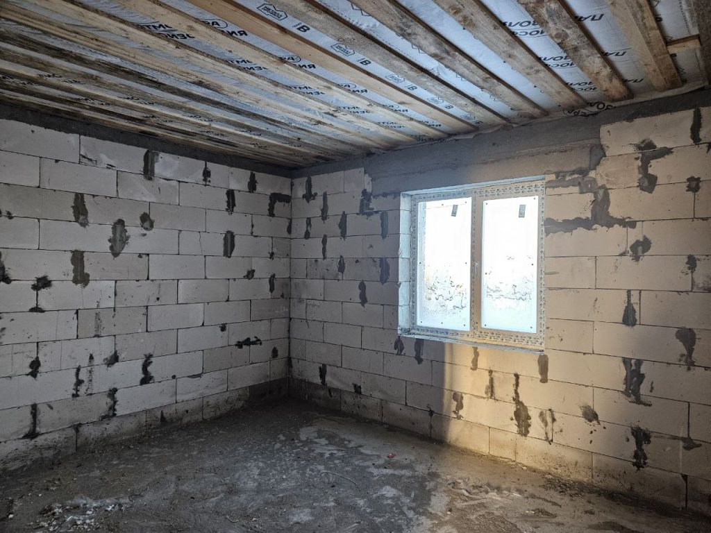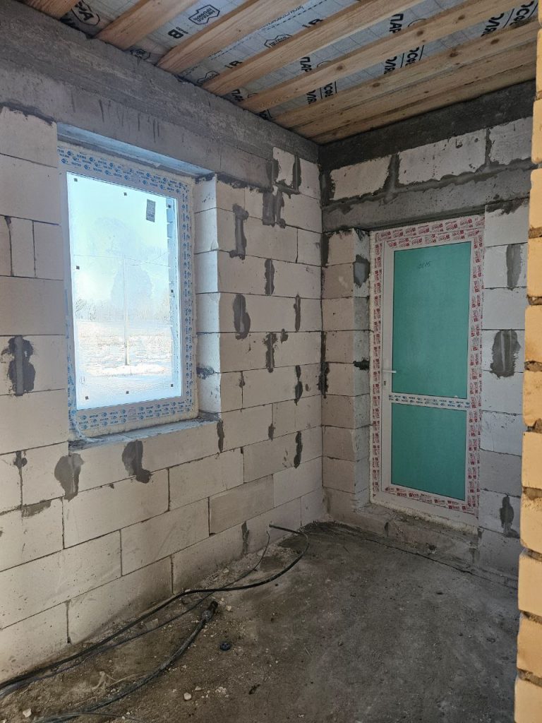 - Материал стен — газобетон с утеплителем, перегородки — кирпич.