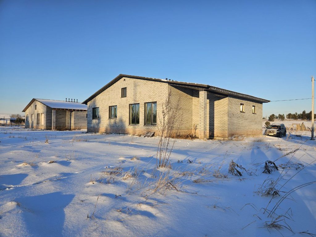 Одноэтажный дом общей площадью застройки 169.50 м2. В площадь входит гараж, теплый тамбур, жилые помещения (2 санузла, прихожая, 3 спальни, просторная кухня-гостиная с выходом на террасу.) Гараж с выходом в котельную. В доме подключен свет, вода, газ. На участке смонтирован септик из ж/б колец — 8,5 куб.